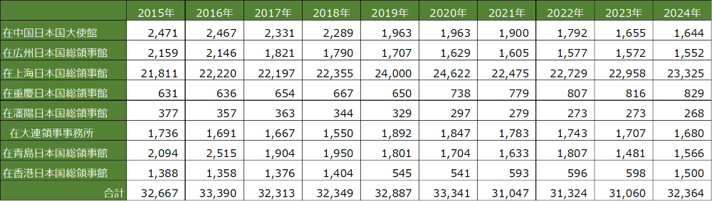 中国に滞在する日本人は、この10年間でどのように変化してきたのでしょうか。今回のコラムでは、外務省が毎年8月頃に公表している「海外在留邦人数調査統計」、「海外進出日系企業拠点数調査」をもとに、編集を行い、中国全体および主要都市別の人数や企業拠点数の推移をまとめました。